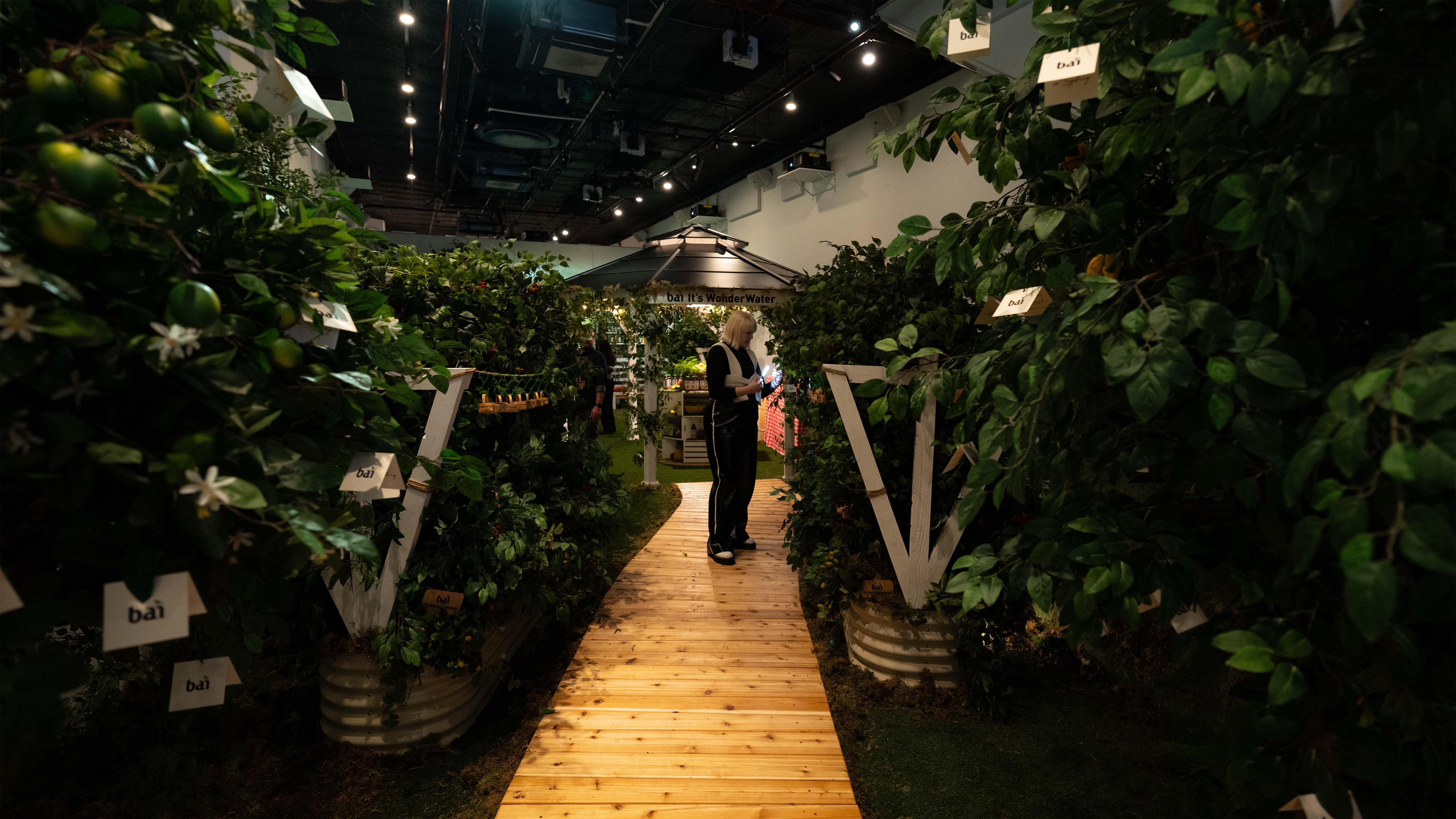 Bai kicked off its new campaign with Sydney Sweeney by transforming LUME Studios into a vibrant, nature-inspired brand environment. Guests entered through a pathway surrounded by lush greenery, fruit trees, and product moments that brought Bai’s WonderWater concept to life in a fresh and interactive way. Spatial audio was used to create a dynamic ever changing auditory world throughout each area of the space.