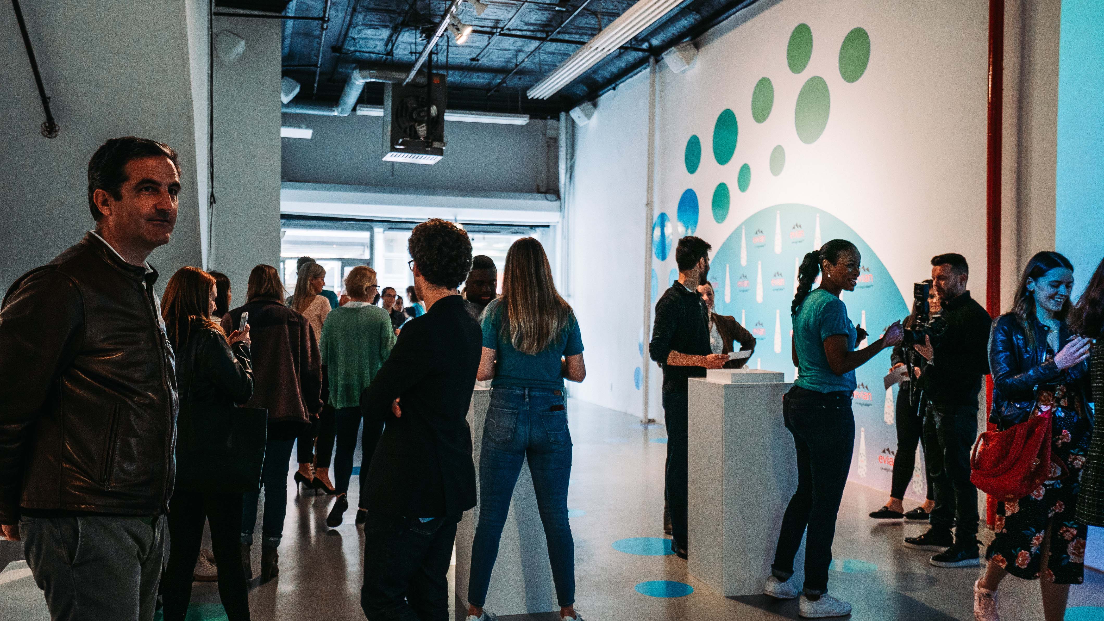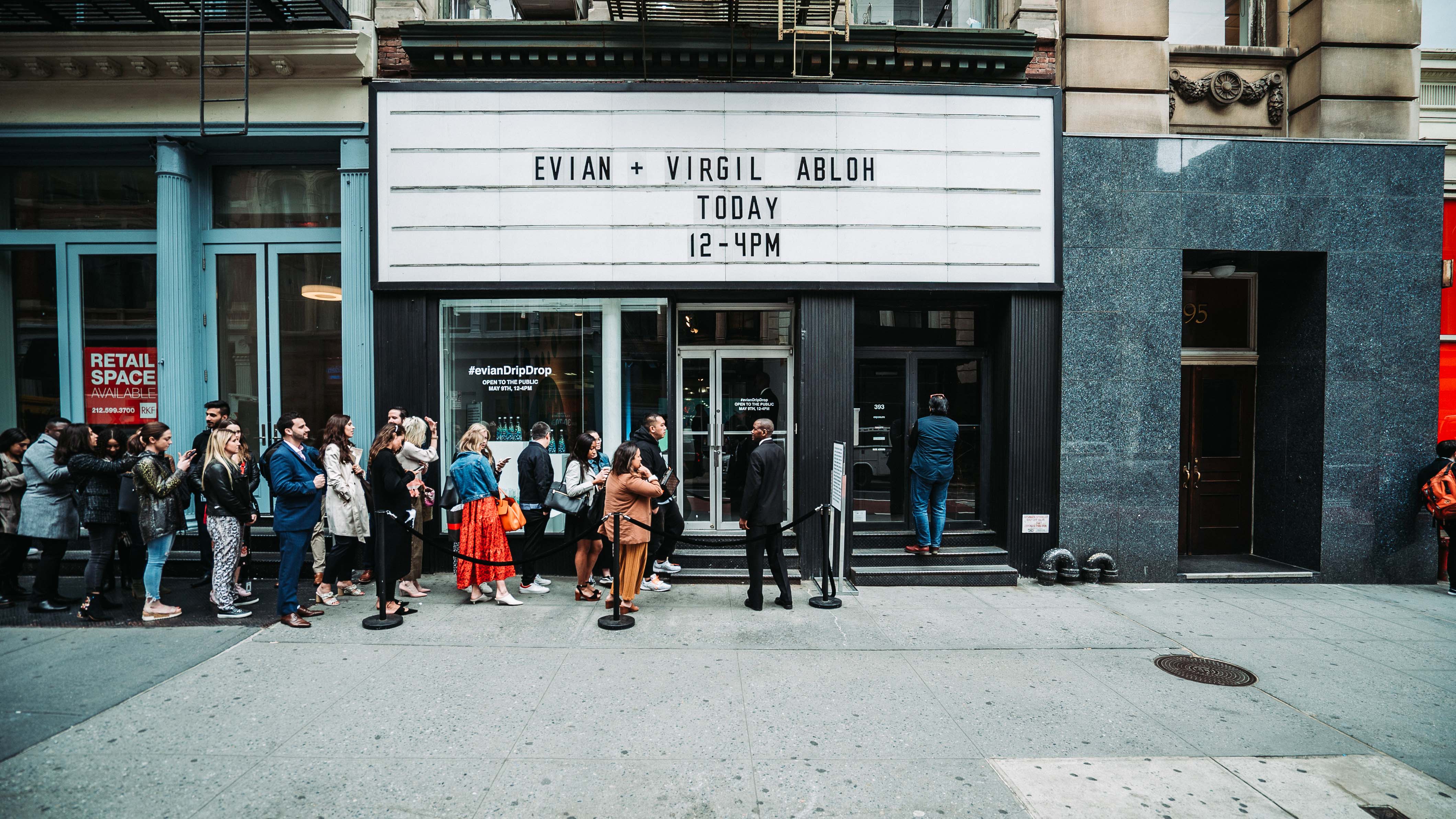Guests lined up around the block for a chance to experience this one-of-a-kind event, where they participated in an exclusive lottery game to win prizes—including the coveted Virgil Abloh-designed Evian bottle. The space was transformed into a refreshing, immersive environment, decorated in Evian’s signature blue hues, floating bubble visuals, and sleek, minimalist aesthetics, all inspired by the purity of water and Virgil’s innovative style.